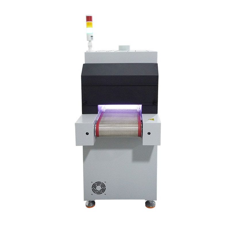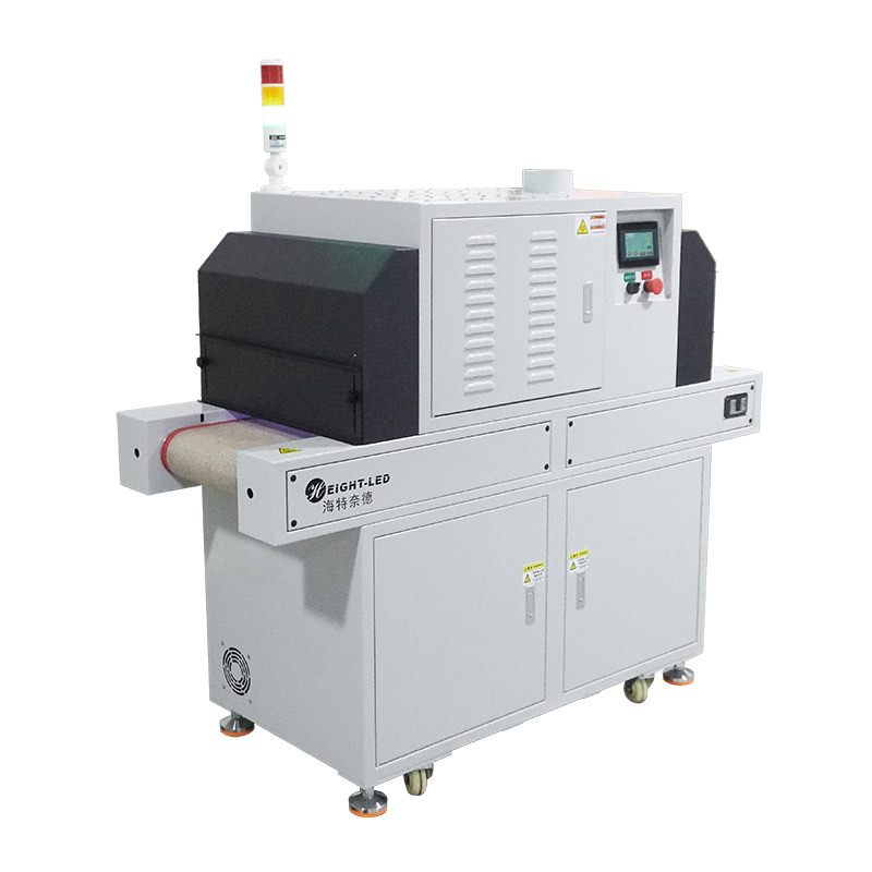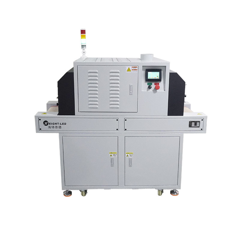 2、設(shè)備提供連續(xù)模式和后端模式、步進(jìn)模式可選,連續(xù)模式下,點(diǎn)擊啟動(dòng)按鈕,UV機(jī)傳送帶及 UVLED一直工作,點(diǎn)擊停止按鈕停止UV機(jī)工作;后端模式下,點(diǎn)擊啟動(dòng)按鈕,UV機(jī)傳送帶及UVLED開(kāi)始工作,當(dāng)后端傳感器感應(yīng)到產(chǎn)品后,傳送帶及UVLED停止工作,當(dāng)產(chǎn)品拿走后繼續(xù)進(jìn)入下一個(gè)循環(huán);步進(jìn)模式下,點(diǎn)擊啟動(dòng)按鈕,UV機(jī)傳送帶開(kāi)始工作,當(dāng)步進(jìn)傳感器感應(yīng)到產(chǎn)品,傳送帶停止運(yùn)行,UVLED以步進(jìn)參數(shù)工作,步進(jìn)參數(shù)運(yùn)行完成后,UVLED關(guān)閉,傳送帶開(kāi)始工作,當(dāng)后端傳感器感應(yīng)到產(chǎn)品時(shí),傳送帶停止工作,當(dāng)產(chǎn)品拿走后繼續(xù)進(jìn)入下一個(gè)循環(huán)。
